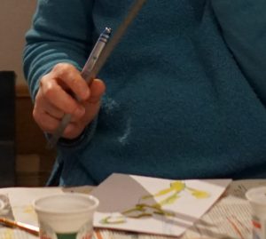 Sur ces lignes qui ondulent se greffent les silhouettes de la montagne et peut être les traces de mes skis. Mon médium préféré est la peinture à l’huile mais j’utilise aussi la liquidité des encres colorées et c’est un moyen plus facile à emporter en voyage, tout comme le pastel à l’huile. Je tisse des liens entre l’observation du réel et une interprétation poétique des paysages. Des fils de couture griffent mes dessins et tracent là encore des lignes. La cordée, le lien pour avancer humainement et chercher ensemble des ressources au coeur de l’Art !