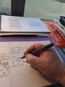 La plupart du temps, mes dessins sont l’expression graphique de sensations, sinon des images qui cristallisent en moi et que je transpose sur papier. Je m’applique à ce que le dessin soit fidèlement ajusté à la sensation. C’est une forme de vie ténue, subtile, qui ne s’impose pas et à laquelle je dois me rendre disponible. Ce que je ressens au moment où je dessine d’une part, et mon imagination d’autre part, sont mes principales sources d’inspiration, mes dessins sont des messagers de l’intériorité. Mon style mêle, sur un même support, éléments de réalité extérieure, tracés, graphismes et jeux de formes-couleurs. Mes dessins ont évolué, passant de tracés strictement à l’encre de Chine, à des œuvres où les couleurs sont beaucoup plus présentes et essentielles. Je choisis le dessin à l’encre de Chine, le crayon de couleur, le graphite, dont la simplicité de mise en œuvre est importante pour moi, ainsi que l’économie de moyens qu’ils représentent. Les dessins sont réalisés sur papier.